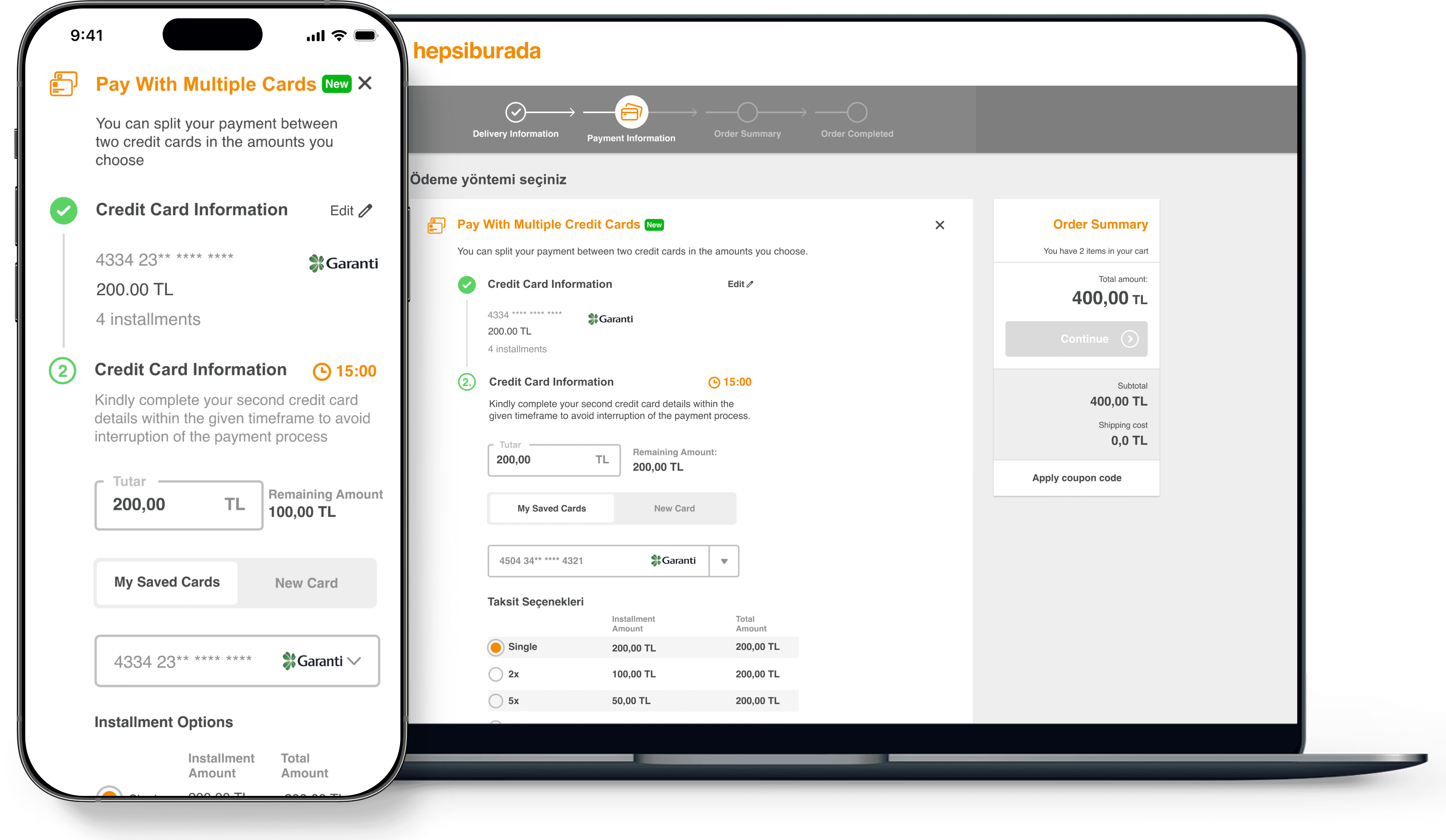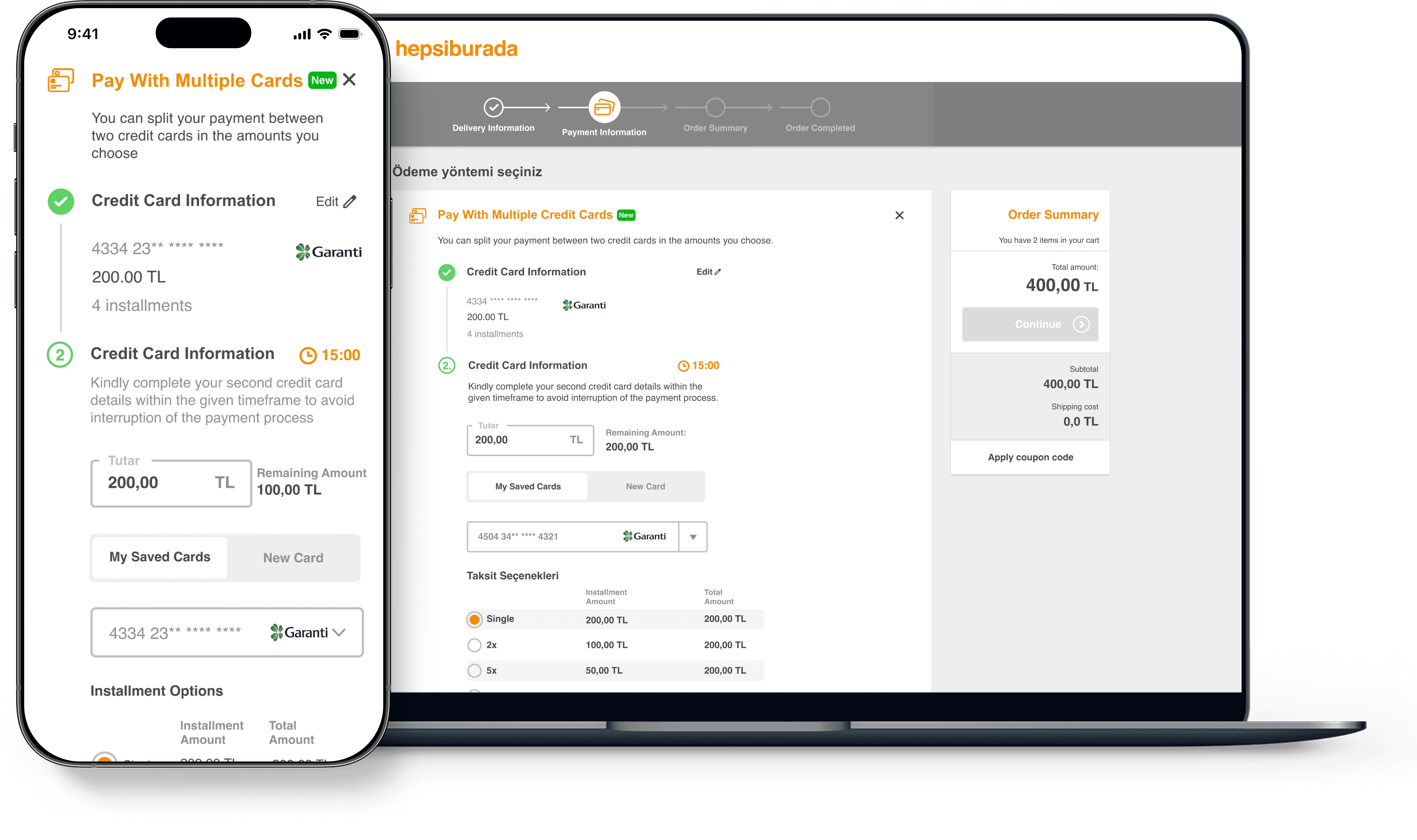 Enhance the checkout experience and increase purchasing and conversion rates by allowing customers to pay with multiple credit cards.
