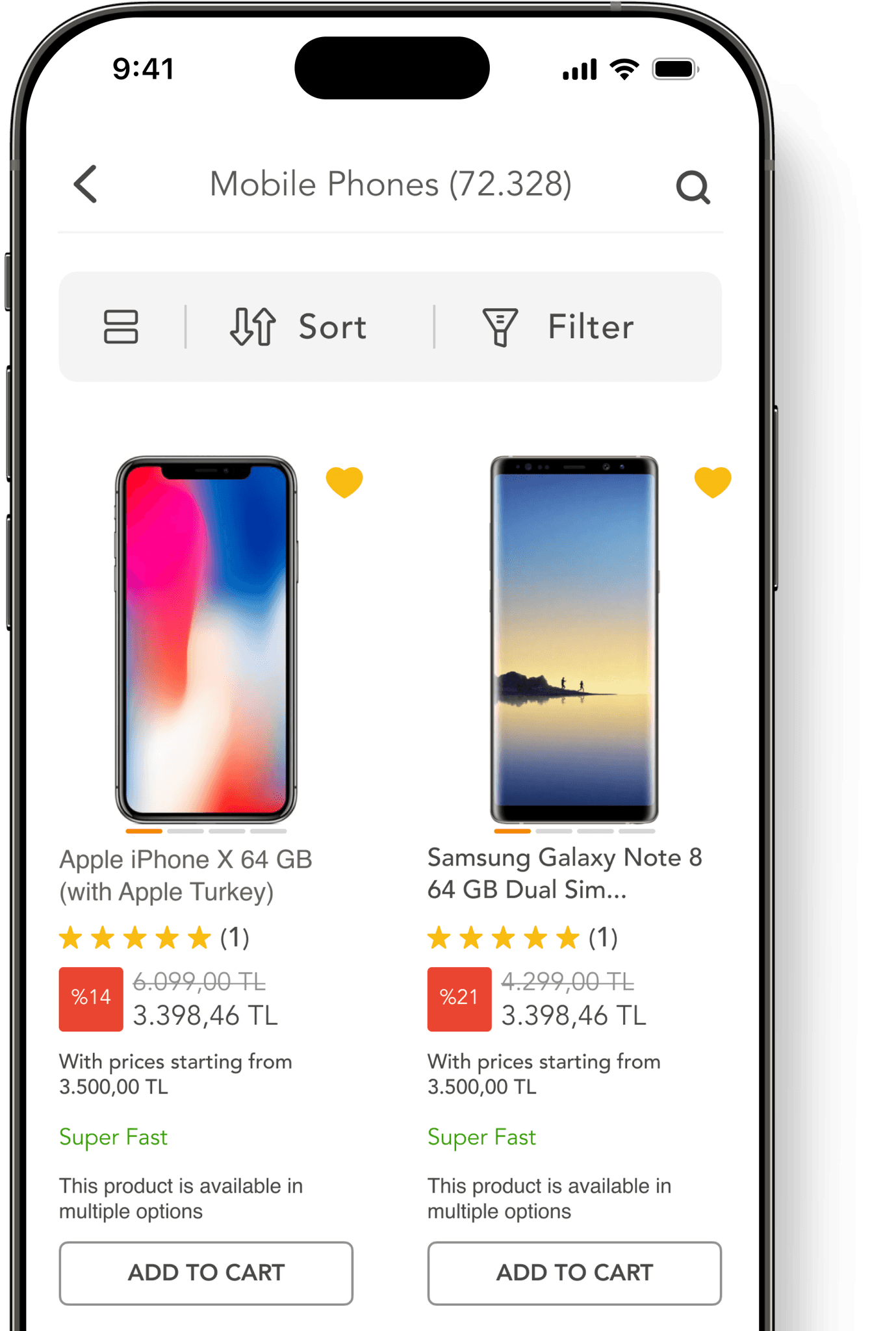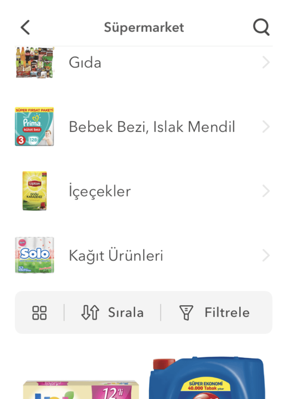 The appearance of mobile web filters and sorting is different from that of the Hepsiburada application.