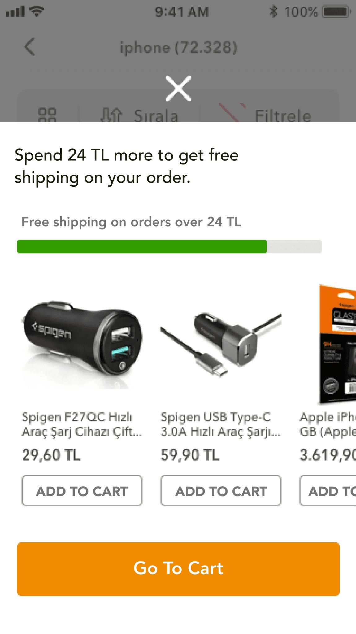 Recommended Products for Free Shipping Eligibility: Upon analysis, we found that 29% of orders amounted to less than 75 TL, where shipping charges applied to these orders. In response, we strategized to enhance revenue and boost add-to-cart rates. As part of this initiative, we implemented a feature to recommend additional products when users add an item priced below 75 TL to their cart on the listing page.