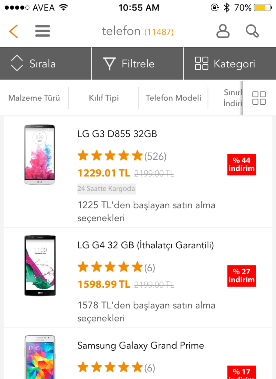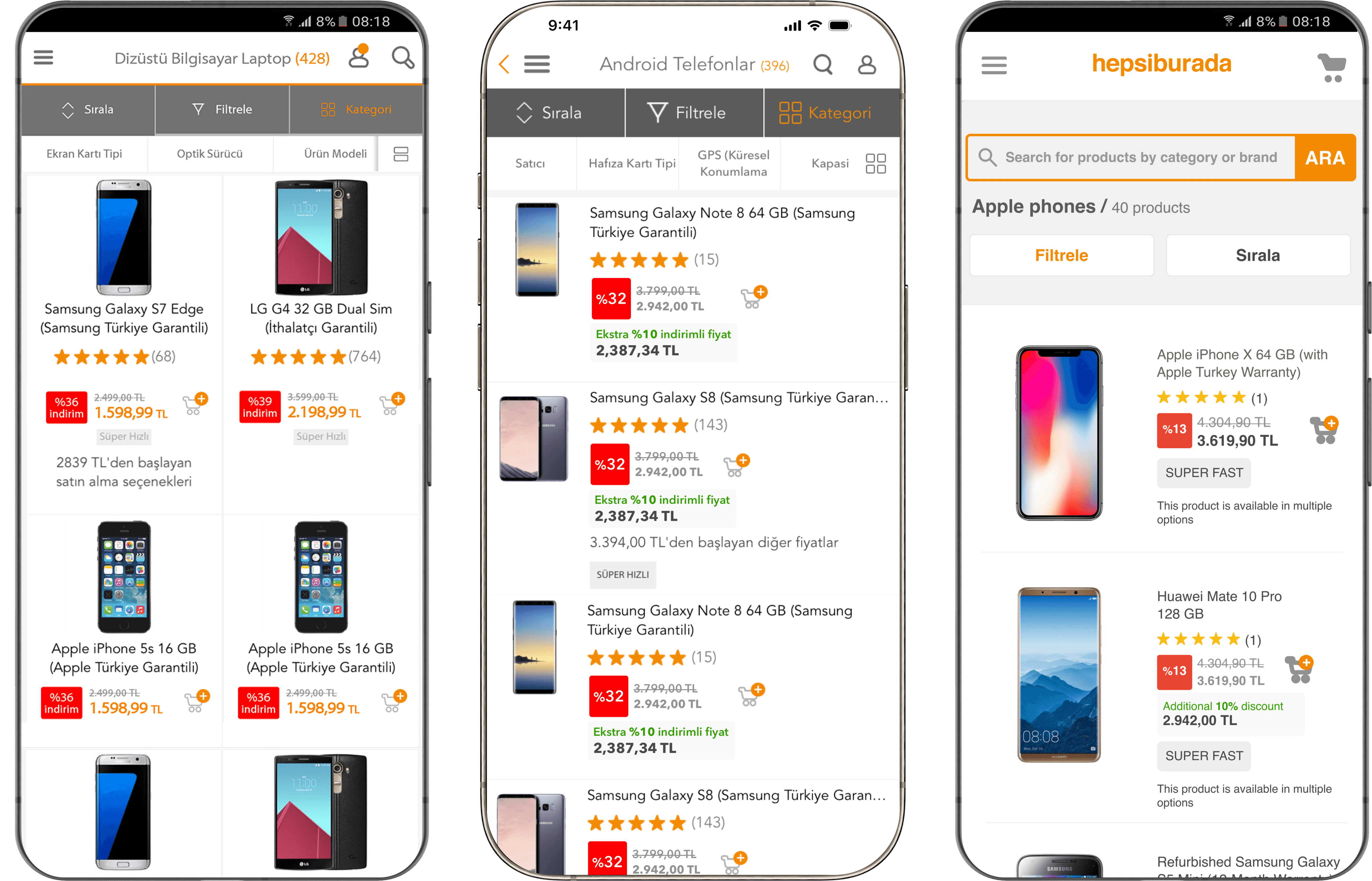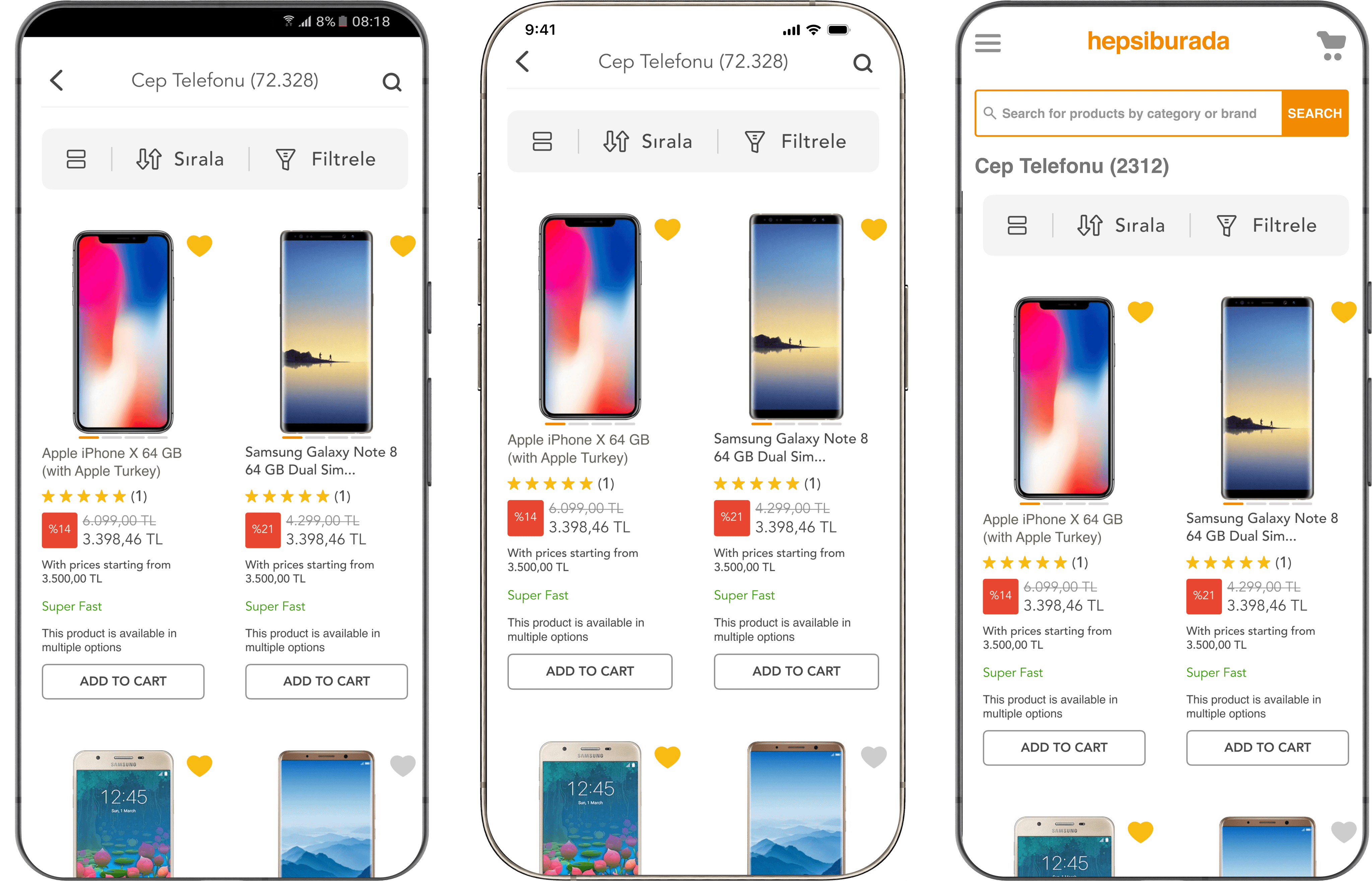Hepsiburada Old Listing Pages: Android, iOS, and Mobile Web