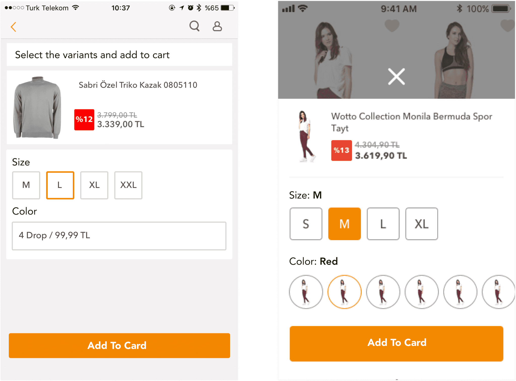 Variant Selection: When a product has variants, we display the variant selection as a bottom sheet to prevent distractions on the listing pages and ensure a seamless user experience.